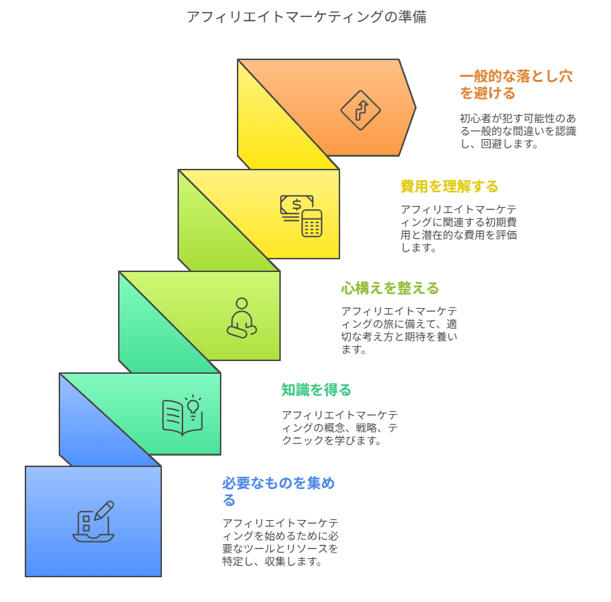 アフィリエイトで成功するためには、闇雲に始めるのではなく、事前の準備が重要です。必要なものや知識、初期費用、さらに先人たちの失敗から学ぶことで、効率的にスタートすることができます。