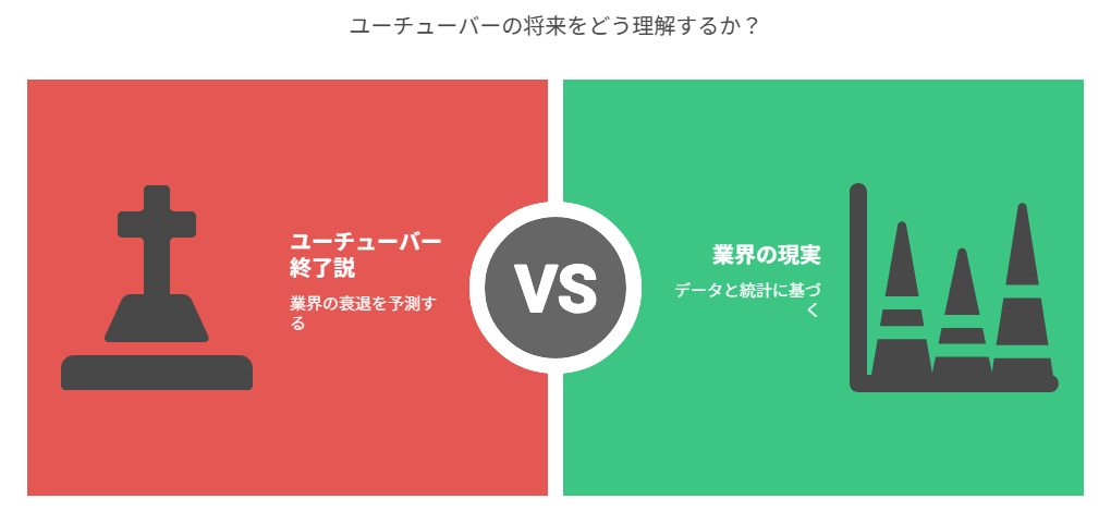 しかし、本当にユーチューバーという職業は消滅してしまうのでしょうか?この記事では、「ユーチューバー終了説」の真偽を徹底検証し、業界データと実例を基に現状を分析します。さらに、激変する環境でも生き残るための具体的な戦略と、今すぐ実践できる対策まで詳しく解説していきます。
