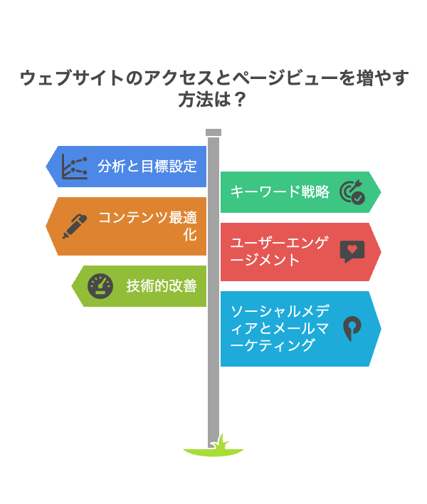ブログのアクセス数を増やすには、計画的なアプローチと継続的な改善が必要です。ここでは即効性のあるものから長期的に効果を発揮するものまで、幅広い施策をご紹介します。自分のブログの状況に合わせて、取り入れられるものから始めてみましょう。