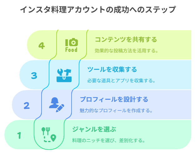 成功する料理アカウントの鍵は「特化」です。幅広いジャンルよりも、明確なテーマに特化した方が圧倒的にフォロワーが増えやすく、収益化もしやすくなります。