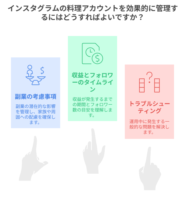 この記事では、インスタ料理アカウントで月3万円を稼ぐための具体的な方法を、準備から運用、収益化まで詳しく解説してきました。