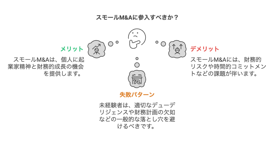 一方で、スモールM&Aには個人が注意すべきデメリットも存在します。