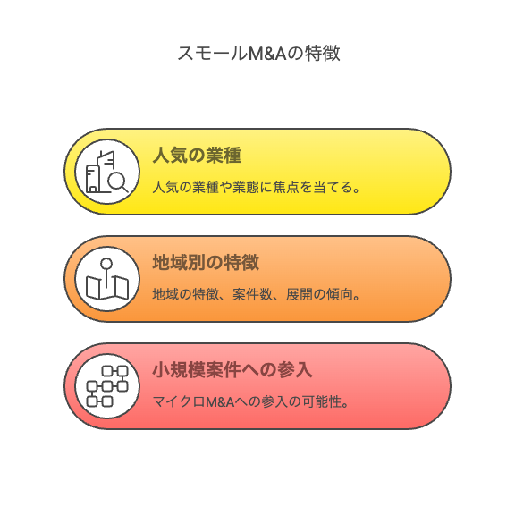 最近では「マイクロM&A」と呼ばれる、さらに小規模な案件も注目されています。初めての方や資金的に余裕のない方にとって、良い入口となる可能性があります。