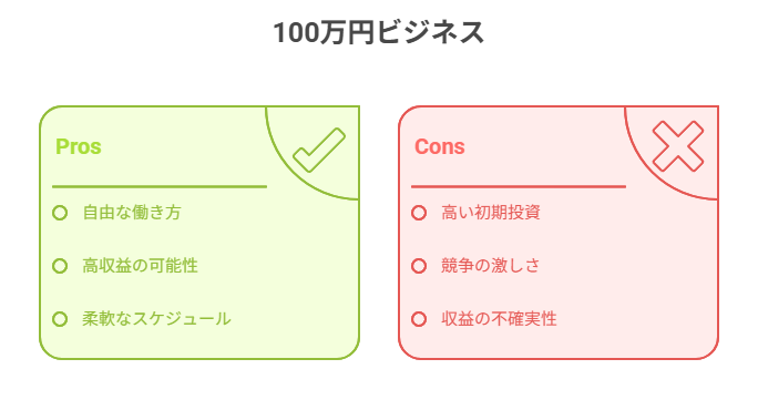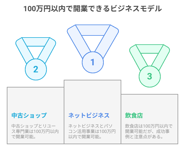 選択肢の豊富さ:ネットビジネスから実店舗まで、多様な業種で100万円起業が可能です。自分の興味・スキル・地域性に合わせて最適な事業を選択できます。