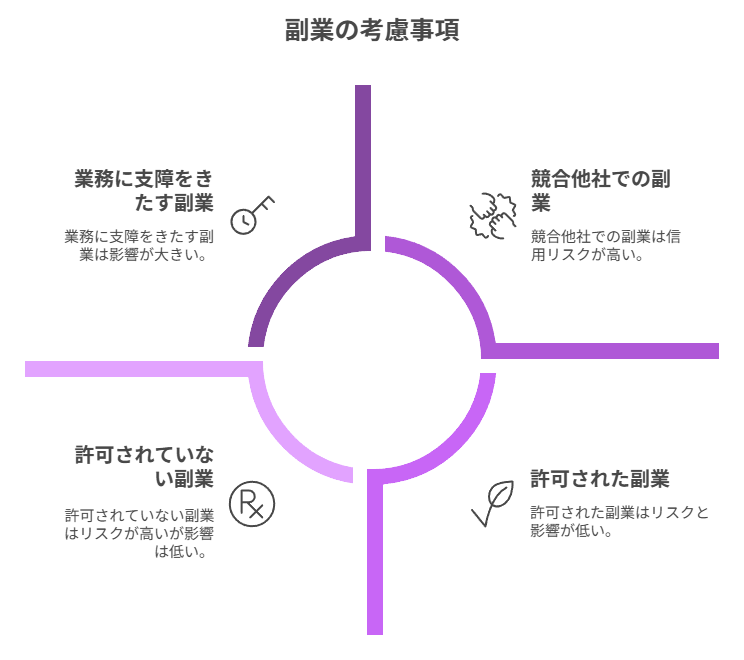 本業と同じ業界・競合企業での副業は、利益相反や機密情報漏洩のリスクから制限される場合があります。