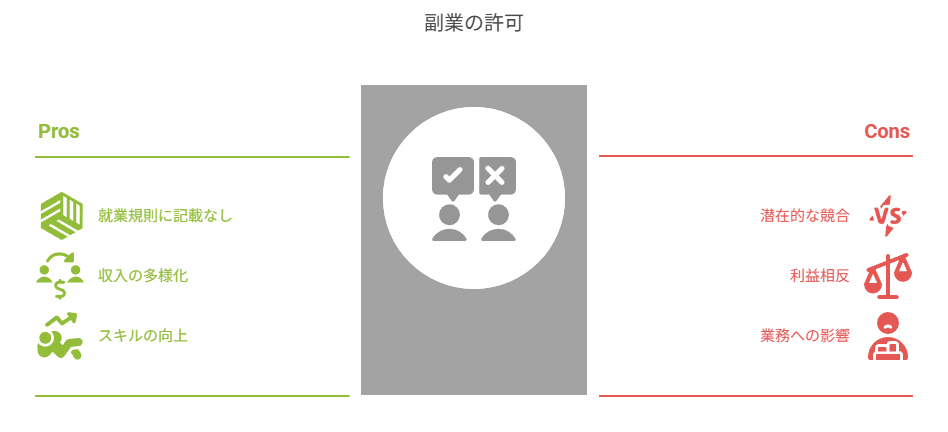反社会的な内容や風俗業など、会社の社会的信用を害する可能性のある副業は制限される場合があります。