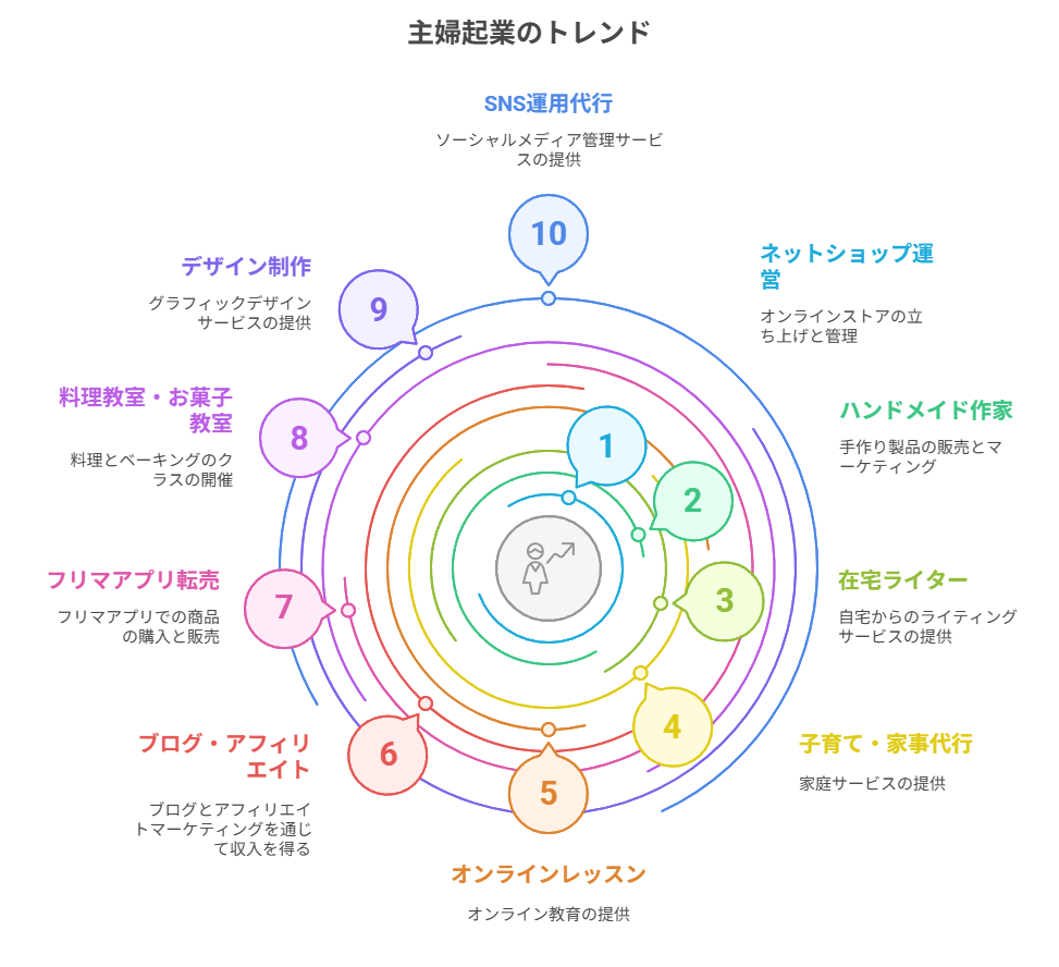 実際に多くの主婦が成功を収めているビジネスモデルを、人気度と成功率を基にランキング形式でご紹介します。各ビジネスの特徴や始め方、収益の目安についても詳しく解説していきます。