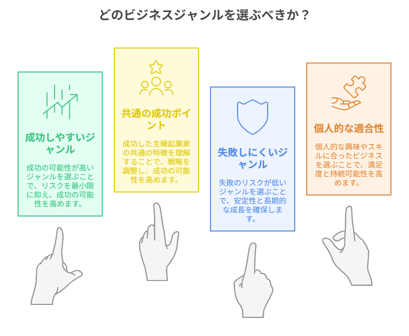 成功する主婦起業には共通した特徴があります。ここでは、どのようなジャンルが成功しやすいのか、そして自分に適したビジネスの選び方について詳しく解説します。