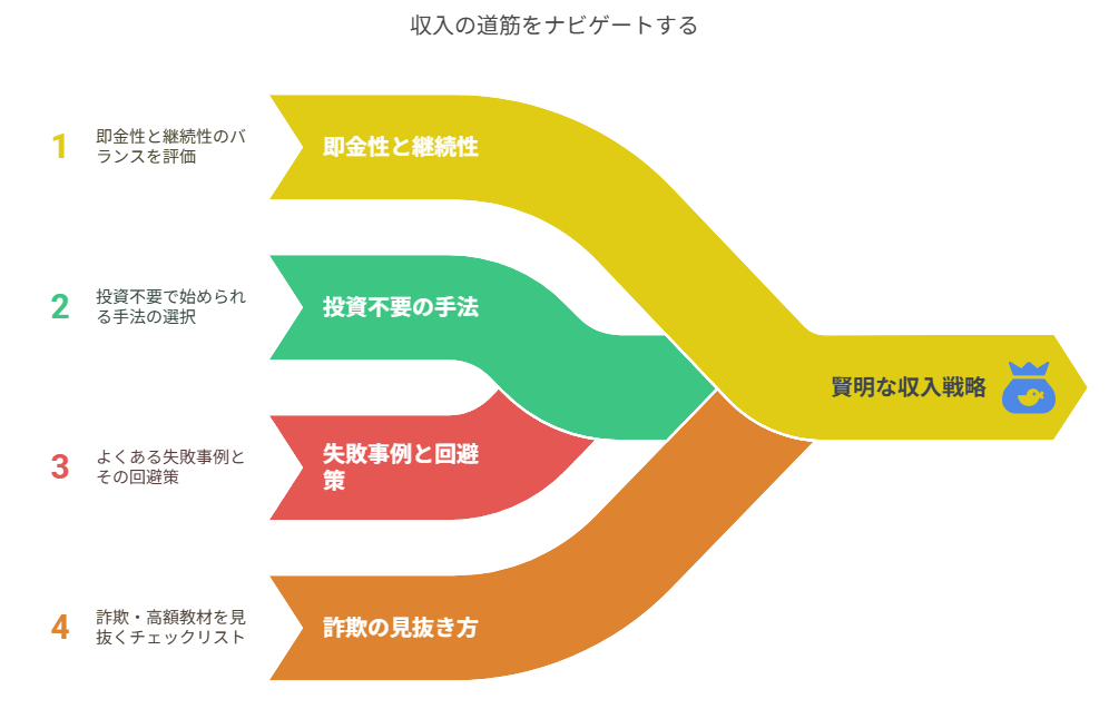 - 稼ぐ方法別のメリット・デメリットとリスク回避