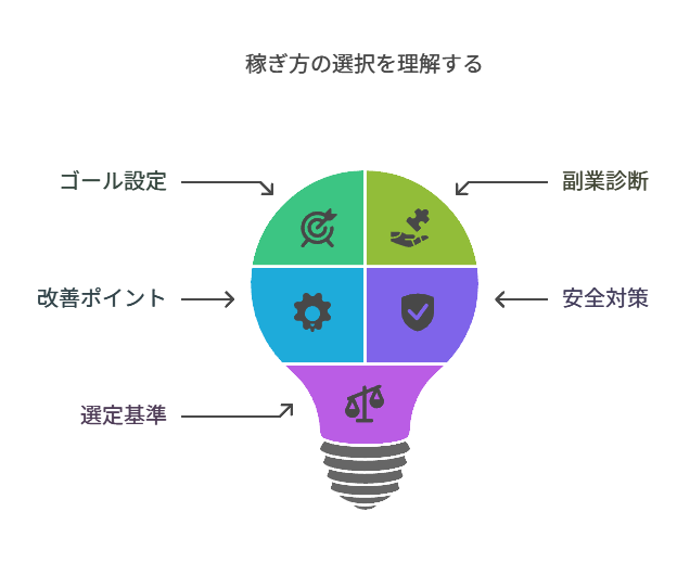 稼ぐ方法を選ぶ際は、以下の4つの基準で評価することが重要です。