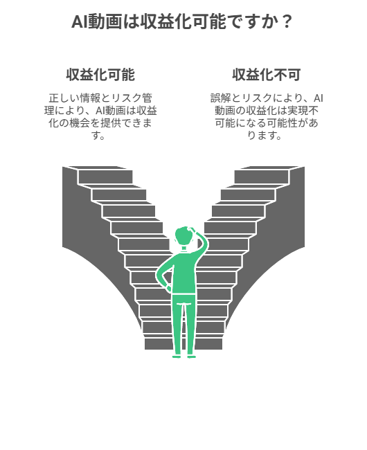 AI動画の収益化には多くの誤解や不正確な情報が流布しています。ここでは事実に基づいた正確な情報と、副業として取り組む際のリスク管理について詳しく解説します。