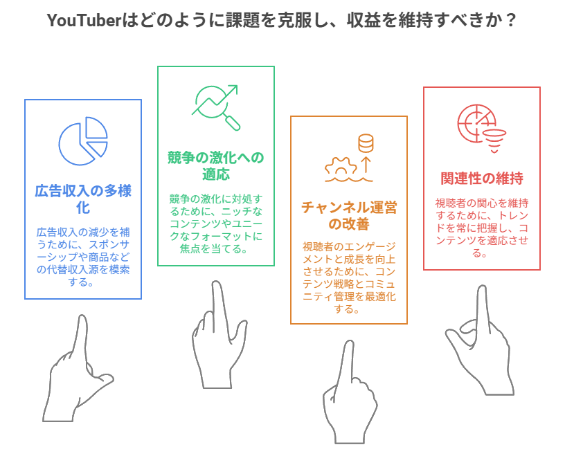 現在のYouTuberが直面している課題は多岐にわたります。収益面だけでなく、制作環境やマーケティング戦略まで、従来のやり方では通用しなくなっているのが現状です。