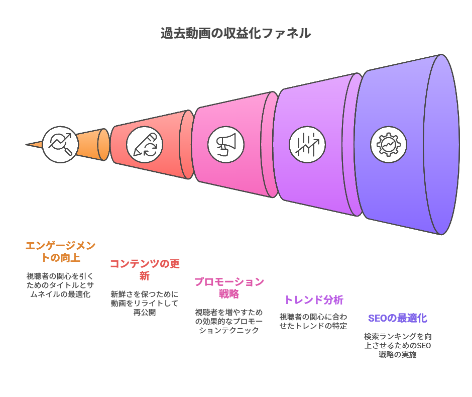 過去動画の収益最大化には、戦略的なアプローチと継続的な最適化が欠かせません。実践的な手法とノウハウを段階的に解説していきます。