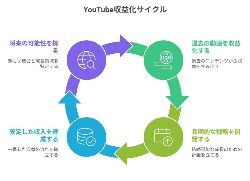 過去動画の収益化は、資産型ビジネスとしての側面が強く、適切に管理すれば長期にわたって収益を生み続けます。重要なのは、短期的な収益最大化だけでなく、持続可能な成長を意識した運営です。