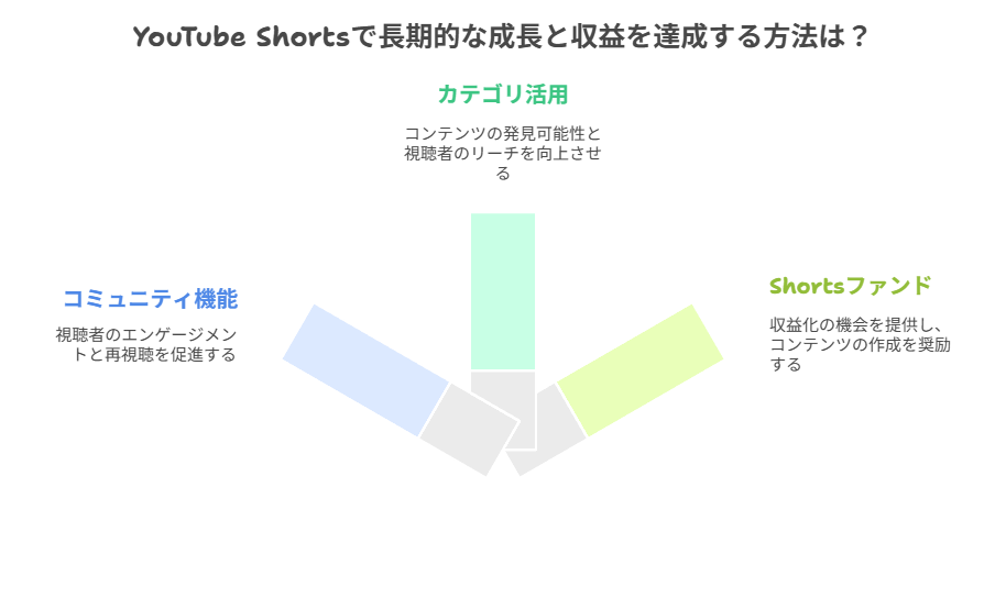 ショートのみでの収益化は限界があります。長編動画、ライブ配信、メンバーシップなど複数の収益源を組み合わせることが重要です。